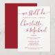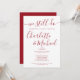 Med signaturstilnamn kan denna moderna vigselårsdagsinbjudan anpassas med dina festdetaljer i elegant rubinröd typografi. Designad av Thisisnotme©