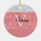 Ruddy Rosa Batik and Grått Watercolor Monogrammad Julgransprydnad Keramik