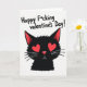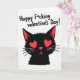 This Valentine’s Day card puts a bold twist on a familiar theme. At the center is a black cat illustrated with rough, sketch-style lines that give it texture and personality. Its eyes are bright red hearts, instantly drawing attention and adding a clear love theme. Matching red accents appear in the cat’s ears and nose, bringing warmth and contrast to the dark fur. Above the cat, the message “Happy F*cking Valentine’s Day!” is written in bold black script, setting a humorous and rebellious tone. The cat’s sly grin adds attitude and charm. Set against a white background, the artwork stands out clearly, making this card perfect for couples who enjoy sarcasm, humor, and celebrating Valentine’s Day their own way. 💕💌🍫