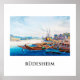 Digitalt återställt och förbättrat: Rüdesheim från sydväst, som Seen från Rhine Harbour i Bingen (Tyskland) - ett akvat av Johann Ludwig Bleuler (skapat före 1840).