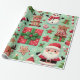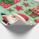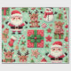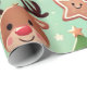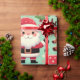 The wrapping paper features Santa Claus and his trusted reindeer, Rudolf, in a playful and animated style. Santa is illustrated with a warm smile, his classic red suit, white beard, and twinkling eyes. Rudolf, with his signature bright red nose, stands beside Santa with an endearing expression, wearing a festive green scarf.