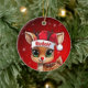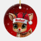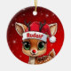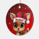 Rudolf! Celebrate the holiday season with this festive round ceramic red ornament featuring an endearing woodland forest animal cartoon graphic of a cute baby reindeer wearing a Santa hat. Perfect deer with antlers for decorating your tree or as a thoughtful gift, this whimsical doe decor makes a cherished keepsake for years to come. Customize by changing the text, the font, the font color, or remove the text. You can even transfer this design onto other products. Enjoy this design your way! Check out ForestBabies Xmas Deer Collection for matching decorations. 🎄🩌 Dimensions: Diameter: 2.87". Thickness: 0.156". Weight: 1.4 oz. Made of white porcelain. Full-color, full-bleed printing. Printing on both sides. Thread does not come attached/tied.