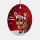 Rudolf! Celebrate the holiday season with this festive round ceramic red ornament featuring an endearing woodland forest animal cartoon graphic of a cute baby reindeer wearing a Santa hat, and Merry Christmas written in white. Perfect deer with antlers for decorating your tree or as a thoughtful gift, this whimsical doe decor makes a cherished keepsake for years to come. Customize by changing the text, the font, the font color, or remove the text. You can even transfer this design onto other products. Enjoy this design your way! Check out ForestBabies Xmas Deer Collection for matching decorations. 🎄🩌 Dimensions: Diameter: 2.87". Thickness: 0.156". Weight: 1.4 oz. Made of white porcelain. Full-color, full-bleed printing. Printing on both sides. Thread does not come attached/tied.