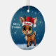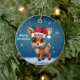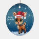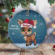 Rudolf reindeer, red nose deer with antlers. Celebrate the holiday season with this blue festive round ceramic ornament featuring an endearing icy winter woodland animal forest wildlife. Unique cartoon graphic of a cute doe wearing a Santa hat, and Merry Christmas written in white. Perfect for decorating your Xmas tree or as a thoughtful gift, this whimsical character decor makes a cherished keepsake for years to come. Customize by changing the text, the font, the font color, or remove the text. You can even transfer this baby fawn lover design onto other products. Enjoy this design your way! 🎄🩌 Dimensions: Diameter: 2.87". Thickness: 0.156". Weight: 1.4 oz. Made of white porcelain. Full-color, full-bleed printing. Printing on both sides. Thread does not come attached/tied.