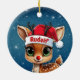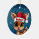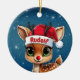 Rudolf the red nose reindeer! Celebrate the holiday season with this festive round ceramic red ornament featuring an endearing woodland forest animal cartoon graphic of a cute baby reindeer wearing a Santa hat. Perfect deer with antlers for decorating your tree or as a thoughtful gift, this whimsical doe decor makes a cherished keepsake for years to come. Customize by changing the text, the font, the font color, or remove the text. You can even transfer this design onto other products. Enjoy this design your way! Check out ForestBabies Xmas Deer Collection for matching decorations. 🎄🩌 Dimensions: Diameter: 2.87". Thickness: 0.156". Weight: 1.4 oz. Made of white porcelain. Full-color, full-bleed printing. Printing on both sides. Thread does not come attached/tied.