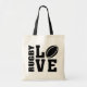 Denna underbara rugby-väska är perfekt för shopping osv. och kommer att visa att du har en riktig kärlek för Rugby-idrotten! På andra underbara Zazzle-produkter har den här rugbytematade designen slagordet RUGBY KÄRLEK och har en rugby boll för brev O. Denna rugbysäck ger en underbar gåva till alla som kärlek spelar rugby eller är en rugby fläkt. Fler rugbygåvor finns tillgängliga i butiken för uppställning och Cheer. Titta i dag!