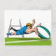 illustration av att en Rugby-spelare gör ett försök med målinlägg i bakgrunden