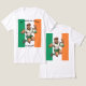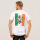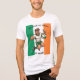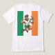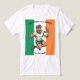 En djärv, tecknad rugby-maskot hoppar fram i luften, visar dubbla tummen upp med en bred leende. Överdriven styrka, en ren grön-vit dräkt och starka rörelselinjer skapar en glad, heroisk firande av irländsk rugbyanda.