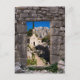 Den helige John-kyrkans ruiner kan ses genom en gammal dörrväg gjord av sten i Kotor i Montenegro. Det här vykortet är helt anpassade.
