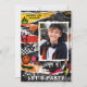 Djärv urban partydesign med graffiti-strukturer, sönderrivna papperlager, skate-inspirerade element och en cool fotolayout. Perfekt för en tonårings födelsedagsfirande med edgy gatumotiv. Bra för pojkars födelsedagspartyn, skateboard-teman, graffiti-evenemang och moderna urbana firanden.