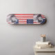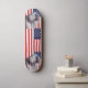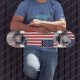 Skateboard med USA:s utformning och en hand av fred, makt och kärlek.