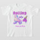 Den här söta och lila designen innehåller frasen "Rolling into 4". Det är perfekt för en skater som fyller år.