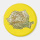 Utformningen på den här magneten har en karta i Rumänien med flagga-färg-bakgrund. Tillsätt lite rumänsk smak till ditt hem.