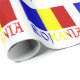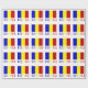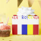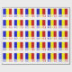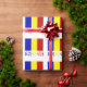 Den rumänska flaggan är en vertikal trikolor med blå, gula och röda ränder. Denna design har ordet RUMÄNIEN under flaggan i flagga färger. Dela presentpapper med din härkomst.
