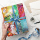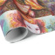 Ursprungliga vattenfärger med gyllene contemporary och färg i ljust grönt, gult, orange, teal, turquas, vit .Elegant,vacker sofistikerad brunette dam,röd, mousserande guld av grönt av en baroque costume,peacock fjäthers.Painting by Bulgan Lumini (c).Denna coola och konstnärliga utformning är perfekt för bröllop,möhippor,söt 16,Quinceanera-födelsedag, romantiska förlovningar,firande,årsdagar,