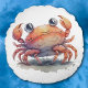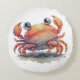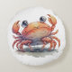En rund kudde med en vattenfärgad illustration av en mycket söt krabba.