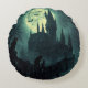 Lägg till en kylig beröring till Halloween-installationen med den här runda kudden av den härdade slottet Halloween. Det mystiska måne, det flygande fladdermus och mörk slottet skapar en gotisk estetisk perfekt för Halloween fest, hemlösa husteman eller mysiga pookusviber hemma.