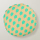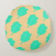 Denna kudde har en botanisk utformning som består av en upprepning av stora platta akvamarinbaserade löv på ena sidan och mindre på baksidan. Båda ställer in sig på en redigerbar orange yta.