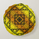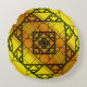 Tre stilar av handdragna fraktioner, inklusive Sierpinski-trianglar, Apolloniska packningar och en liknande tematisk fyrkantig design, utgör lagrar i denna geometriska mandala, överlagrad på en ljus gult- och orange-gradient.
