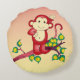 Denna söta runda dekorativ kudde presenter är en röd apa med en lång krympande svan på träd gren, omgiven av grönt löv.