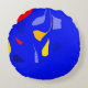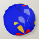 Blått, blått, orange och gult färgad löv ut från denna blå runda kudde.
