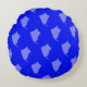 Denna runda kudde uppvisar en likformig upprepning av tre ljusblå löv på ett ultramarinblått yta.