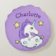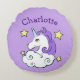 Unicorn Design Round Pillow med anpassade text och bakgrund färg.