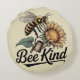 Bee-Bee-Rund Pillow. Fläktande bin med kopparbehållare i vatten och stor solros. Underbar för alla hemorder.