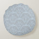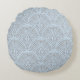 Rund dekorativ kudde med grått fläkt mönster över ljusblå bakgrund