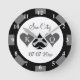 Rund kasinopoker, personligt bröllp-gåva klockan chip. Anpassningsbar poker chip-markörmyntutformning för giftermål i Sin City eller andra ställe. Personlig spelskiva med namn initialer av brud och brudpar med monogrammet. Spelkortssymboler med kung och drottning av hjärtan och spader. Elegantens skripttypografi - malldesign med namn på platsen för anpassningsbarna namn. Roligt kasino-speltema hemdekanter. Svart och vitt färg.