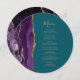 Den här elegantens lämnat kant runt den moderna bröllop-menyn har en lila vattenfärgsagat gräns som trimmas med faux guld glitter. Anpassadet kombinerar handskriftsskript guld-färgad och kopparplåt typsnitt på en färgblå bakgrund. Den omvända sidan har en matchande lila- och guld-agate-design.