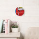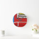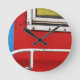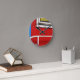 Den här abstrakten på coolan, med en i mitten av väggklockan, har ett detaljerat foto från en färgfull gammal bil i tåg.