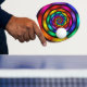 En hypnotiserande teckning, fullt av luminöst färg. Design för pingpongpaddlar med mera.