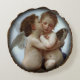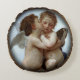 Vacker rund kudde med en gammal konstbild av två keruber