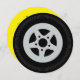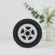 Barnkalasinbjudan för racerbilstema. Inbjudan till barnkalas med biltema, grillfest, racerbilsevent etc. med möjlighet att anpassa text och bakgrundsfärg. Söt hjuldesign med anpassat namn och ålder på barnet. Lekfull typografi. Anpassningsbar för sportiga pojkar och flickor. Rolig rund utskärningsform. Illustration av leksaker för barn. Skapa runda inbjudningar för 4:e, 5:e, 6:e, 7:e, 8:e, 9:e, 10:e, 11:e, 12:e, 13:e födelsedagen etc. Passar även för barn till mekaniker eller förare.