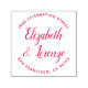 Anpassa enkelt den här anpassningsbarna Rund Bröllop-Returadressen självfärgande gummi frimärke med ditt eget namn och adress. Om du vill anpassa gummimallen klickar du på "Anpassa den här frimärket" och ändrar texten i rutorna. Finns i 9 olika färger och 6 storlekar. Se din design på bildskärmen så nära den faktiska storleka som möjligt för att se till att texten skrivs ut på förväntad storlek. För användan som returadress frimärke kommer de flesta människor att behöva en större storlek än detta. Dessa självtryckande gummi frimärke frimärke med returadress upp till 10000 tryck med varje cylinderampull har en mjuk hand för säkert grepp och finger utan bläck och en miljövänlig processaa för tillverkning. Ingen minsta orderkvantitet.