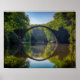 Runda bron i Grått Sten över en flod i Skogen Poster