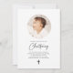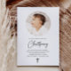 En modern, minimal julklappsinbjudan som innehåller ett runt foto och ord "Christening" i ett calligraphy stil-teckensnitt. Observera att du inte kan ändra "Christening" ord, men du kan redigera all annan text i denna design. Du kan ändra färg eller ta bort det och ersätta det med en ny textruta om du vill.