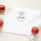 Den här klassade returadressen frimärke har familjens efternamn i mitten med adress i en cirkel runt den. Gör att inbjudningar och helgdagskort blir en paus, eller använda det som ett flytta meddelande till ny adress med familj och vänner.
