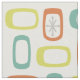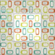 En enkel minimalistisk konst på 1950-talet i abstrakt mönster med rundade rektanglar och sputnikstjärnor i chartreuse, turkos och orange.