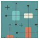 Denna nutidsålder som inspirerade till medelårhundradets moderna utformning har djärva linjer och geometriska former i teal, turkos, gult och orange.