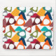 Den här musmattan har en modern design i mitten av århundradet av spridda trianglar, somliga med hål, i tro färg.