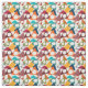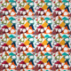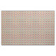 Denna väv har en modern design i mitten av århundradet av spridda trianglar, vissa med hål, i färg.