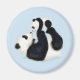 Rundmagnet Cute panda mor och unge (blått) Magnet