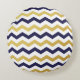 Rundor runt guld och blå Chevron Mönster Rund Kudde
