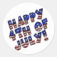 Round Sticker/Lycklig 4 juli. Finns i 2 storlekar Stor: 3 tum i diameter (6 per lakan) Liten: 1,5 tum i diameter (20 per lakan) Högkvalitativ, fullt-färg, fullt-utfallande utskrift Scratch-resistent framsida, enkel skal och ryggstöd