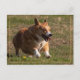En söt Welsh Corgi fotograferade medan han sprang över en grassy fält under våren.