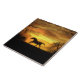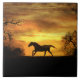En vacker gult och gyllene solnedgång bakom en löpande häst. En underbar silhuett. En underbar gåva till hästälskaren, den här konstplattan ser också underbar ut.