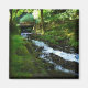 Vackra gröntens moss och ferns längs Wahkeena Falls i Columbia River Gorge i Oregon. Se på vatten som flyter under bron på den historiska motorvägen Colombia.