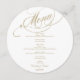Menykort för elegant och formell bröllop-middag med obegränsade alternativ för färg. Anpassa med namn, händelsemedatum och menyinformation. Att kasta fångst på gästmiddagen tallrikar eller slå in dem i blöjor vid varje ställe-inställning för en snyggt.